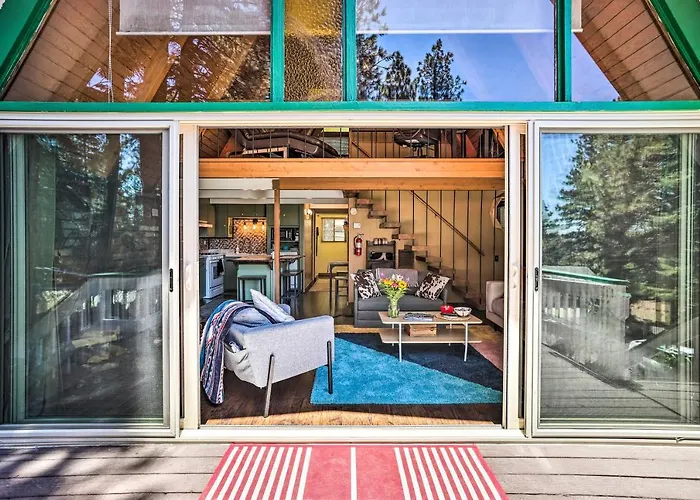Gäste profitieren von einem Bügeleisen/Bügelbrett und einer Klimaanlage sowie von modernen Einrichtungen wie WLAN und einem Flachbildfernseher mit Satellitenkanälen. Die Running Springs A-Frame With Deck And Mtn Views! verfügt über ein Badezimmer mit einer getrennten Toilette, einer Badewanne und einer Dusche. Ein Haartrockner und Handtücher sorgen ebenfalls für Ihren Komfort.